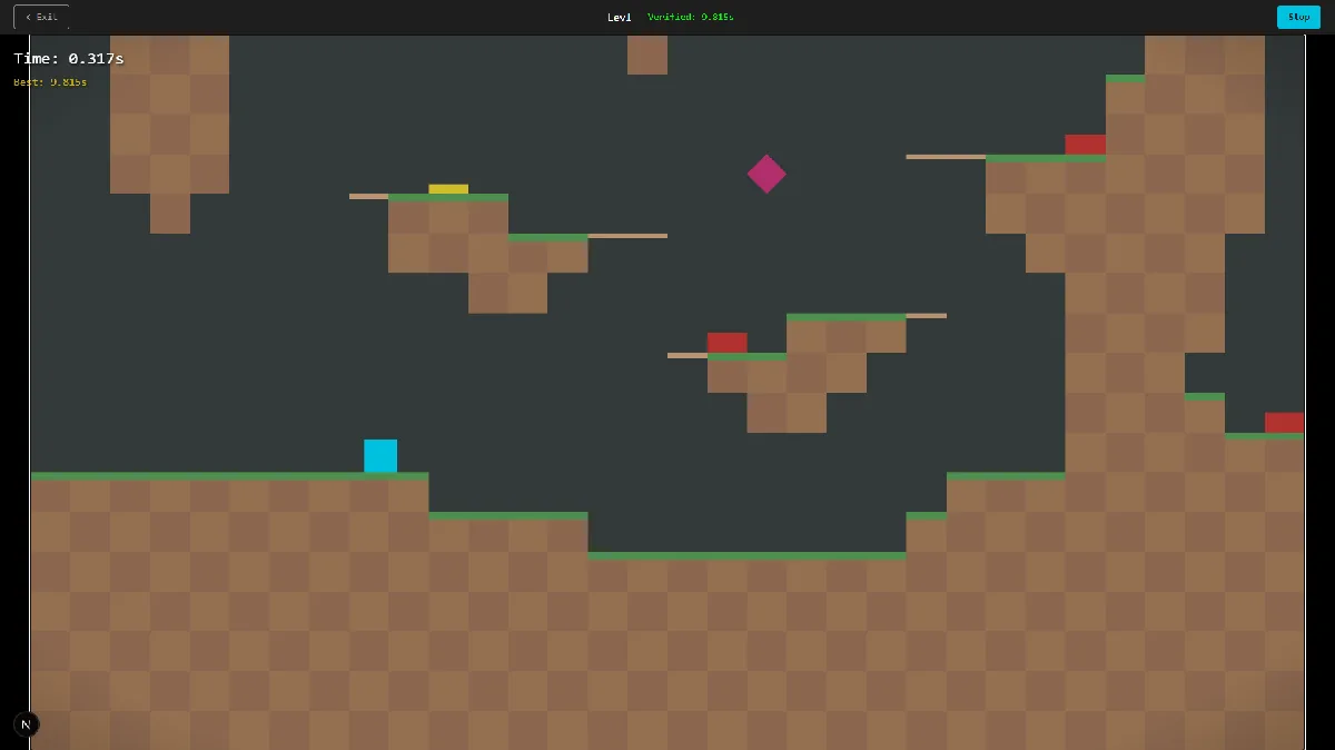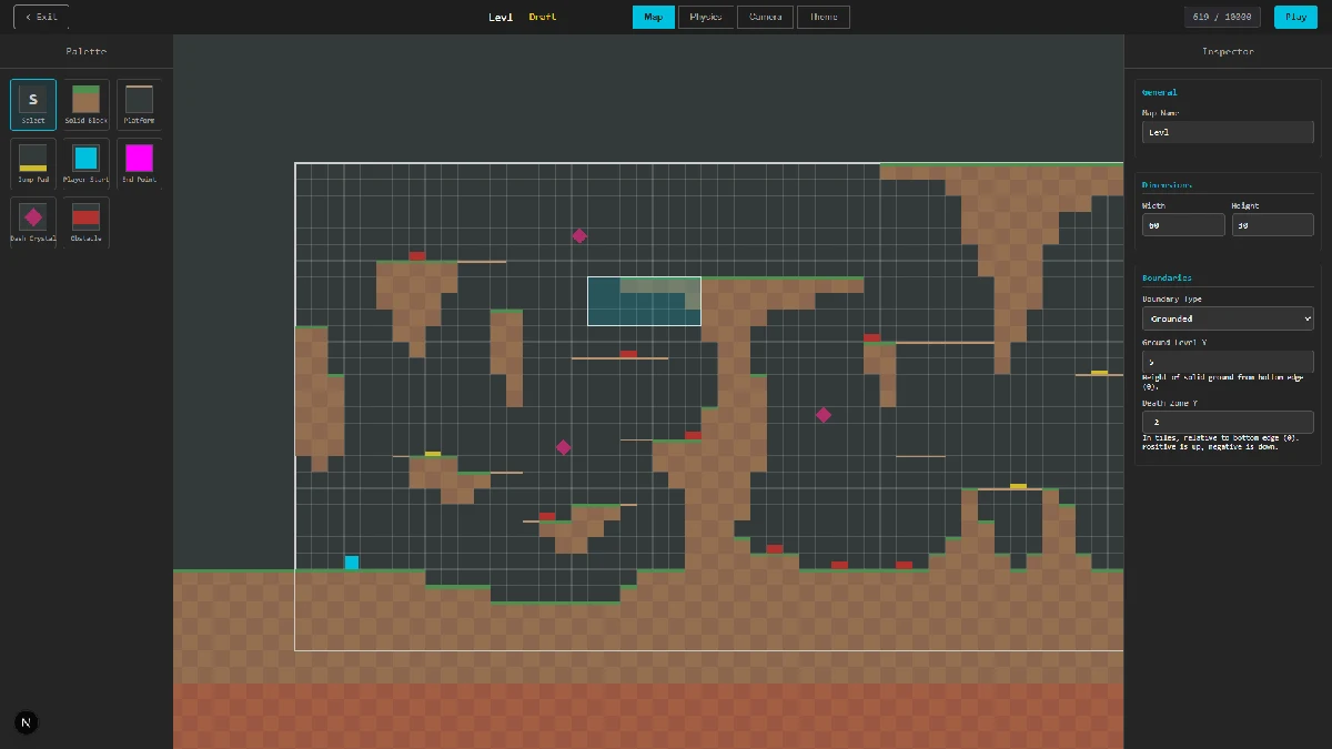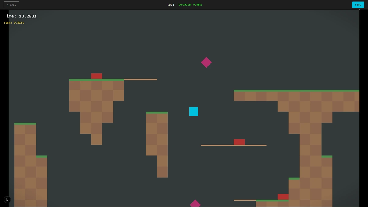- Deterministic Game Engine: A sophisticated, tick-based 2D platforming physics engine has been implemented, featuring coyote time, jump buffering, wall sliding, dashing, and more.
